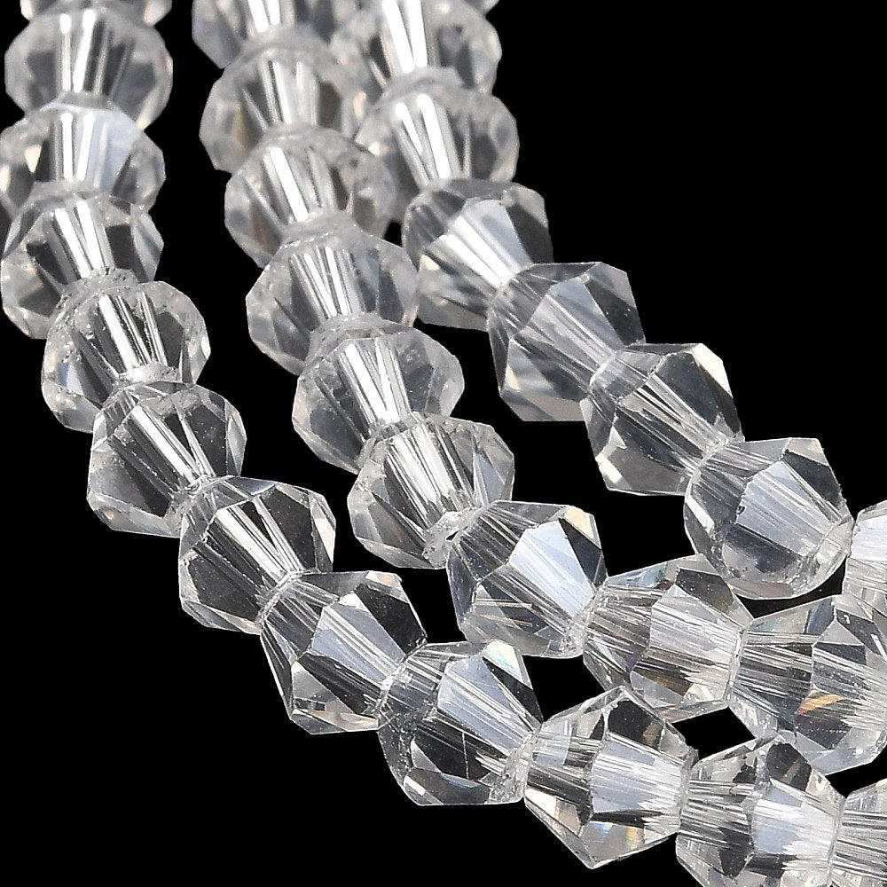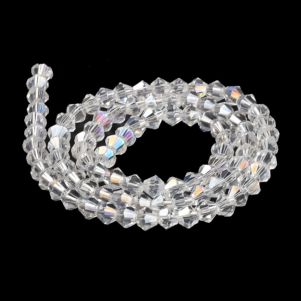 Transparent Electroplate Glass Beads Strands, AB Color Plated, Faceted, Bicone, Clear AB, 2.9~3.3x2.5mm, Hole: 0.7mm, about 145~150pcs/strand, 16.34~16.54 inch(41.5~42cm)