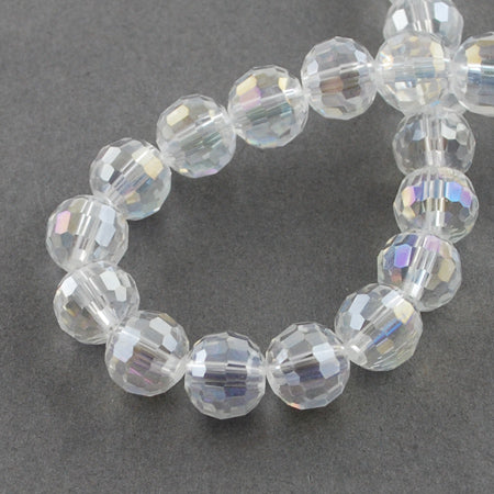 Transparent Glass Bead Strands, Faceted, Round, Clear with AB Finish, 12mm, Hole: 2mm, about 25 beads,