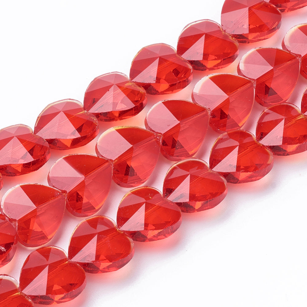 Transparent Glass Beads, Faceted, Heart, Red, 10x10x6.5mm, Hole: 1mm, 10 beads.