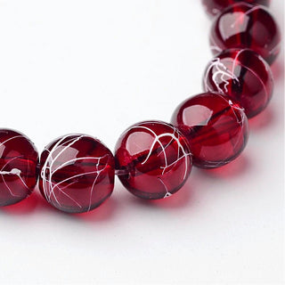 Transparent Glass Beads. Round. 8mm. Rustic Red with slight White Splatter. (approx 50 Beads per 16" Strand)