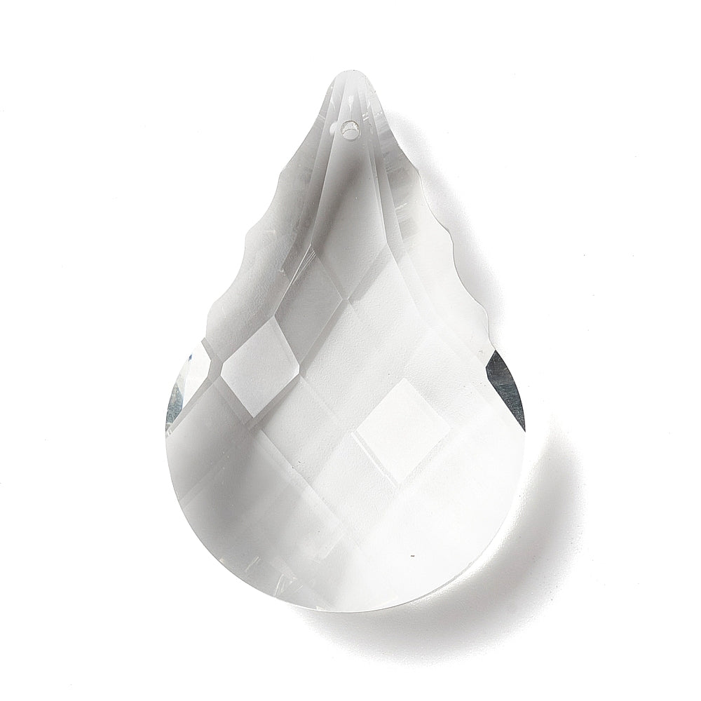 Transparent Glass Big Pendants, for Chandelier Crystal Hanging Pendants/ Ornaments, Faceted, Teardrop, Clear, 60~63x40x16.5mm, Hole: 1.6mm. Sold Individually.