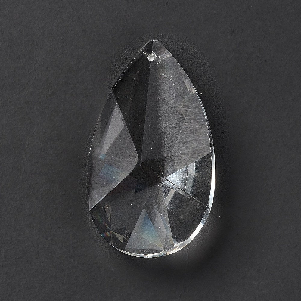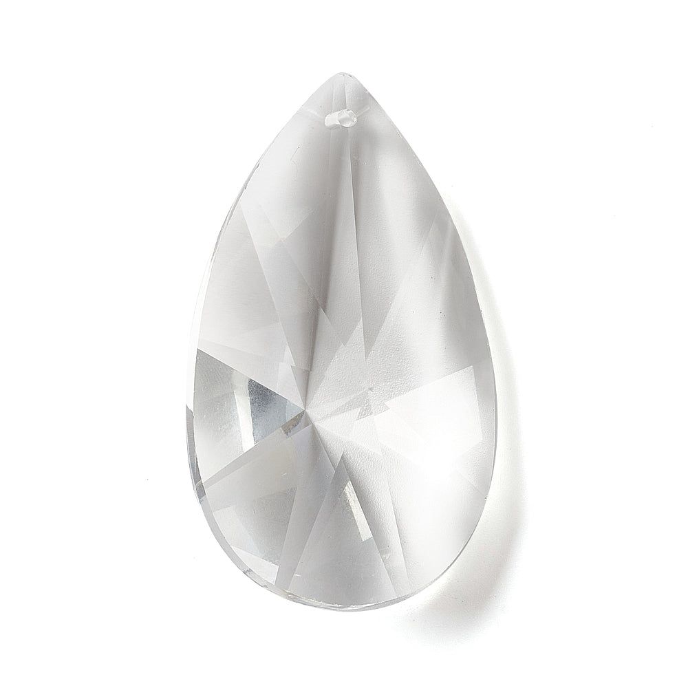 Transparent Glass Big Pendants, for Chandelier Crystal Hanging Pendants, Faceted, Teardrop, Clear, 62x35.5x21mm, Hole: 1.8mm. Sold Individually.