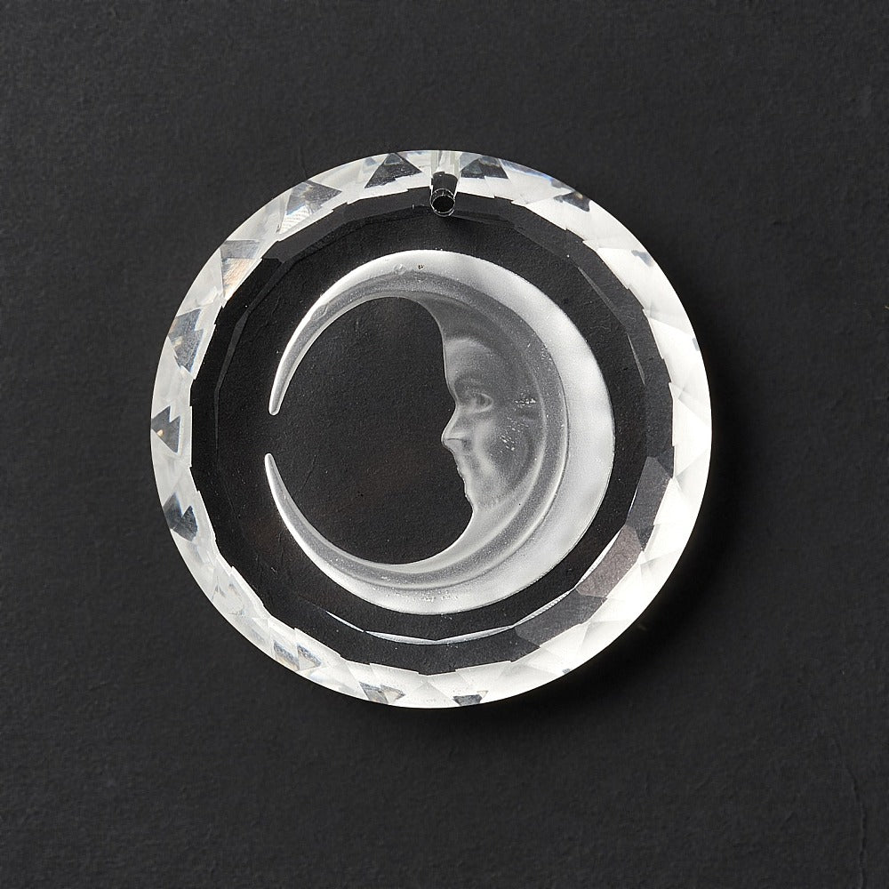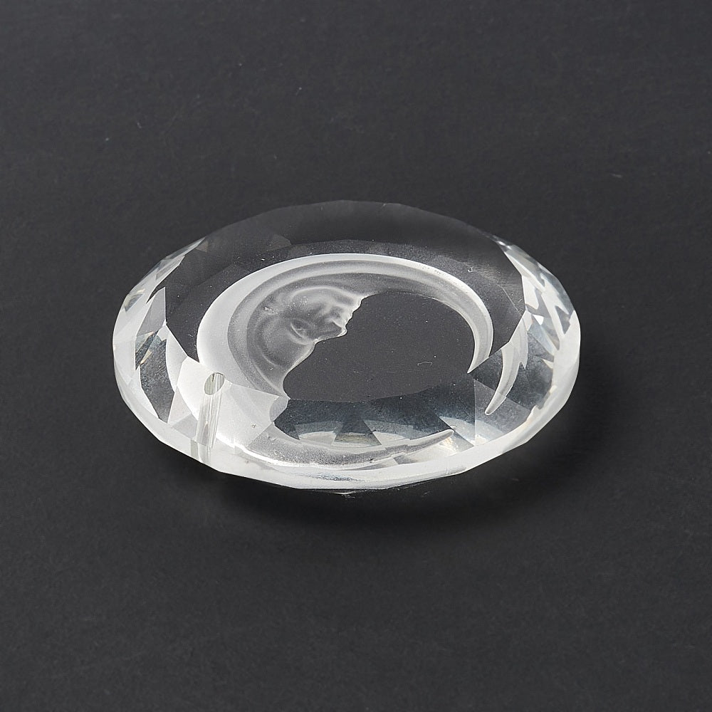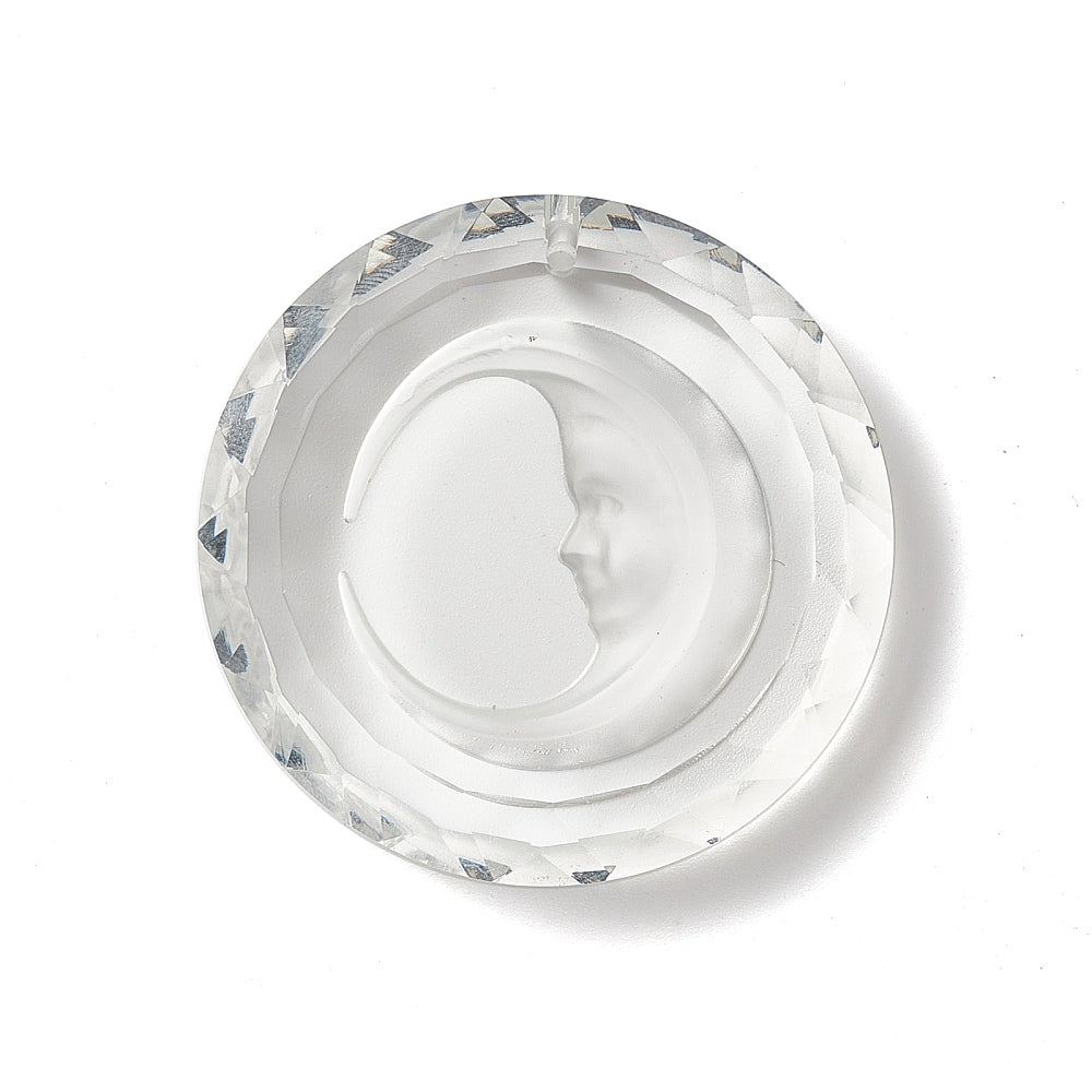 Transparent Glass Pendants, for Chandelier Crystal Hanging Pendants/Ornament, Faceted, Flat Round with Moon, Clear, 45x10.5mm, Hole: 1.6mm. .Sold Individually.