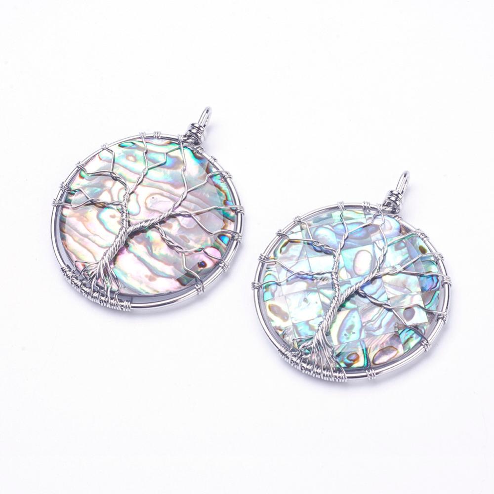 Tree of Life. Wire Weaving on Abalone Shell. 56x45x9mm, Hole: 3mm. Sold Individually. (Gorgeous!)