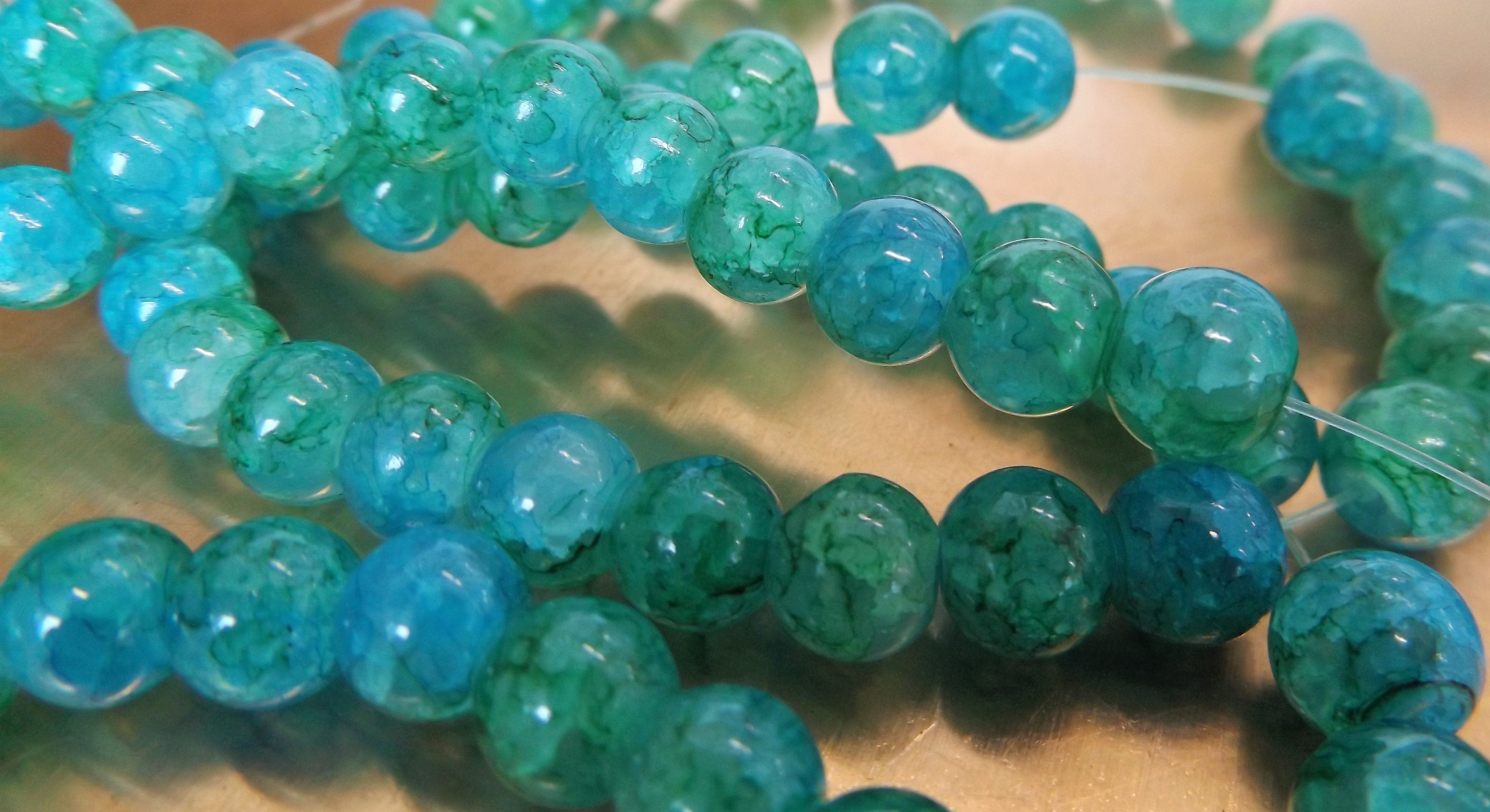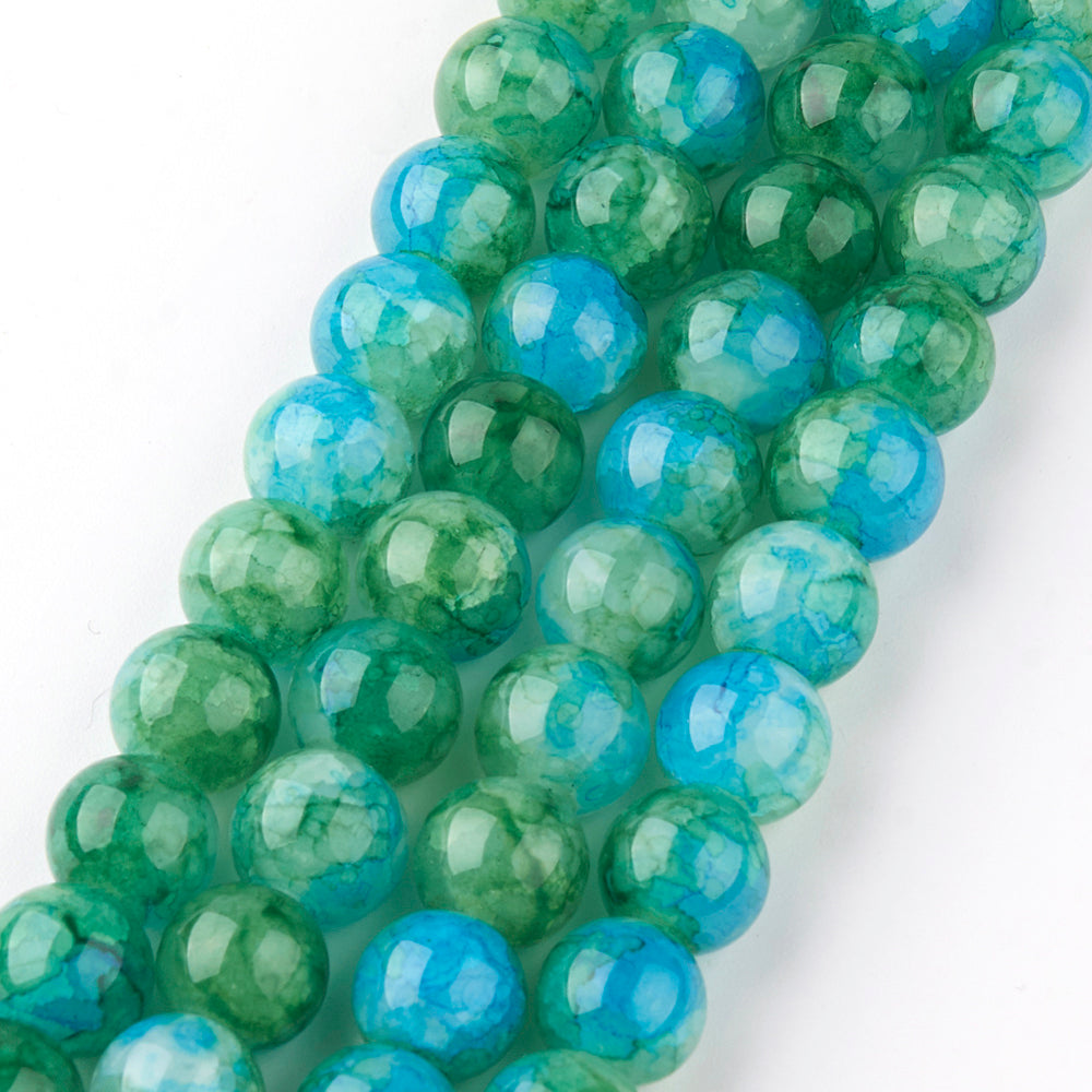 Two Tone Crackle Glass Round Bead Strands, (Teal and Turquoise), 8~9mm, Hole: 1mm; about 54 Beads Per strand