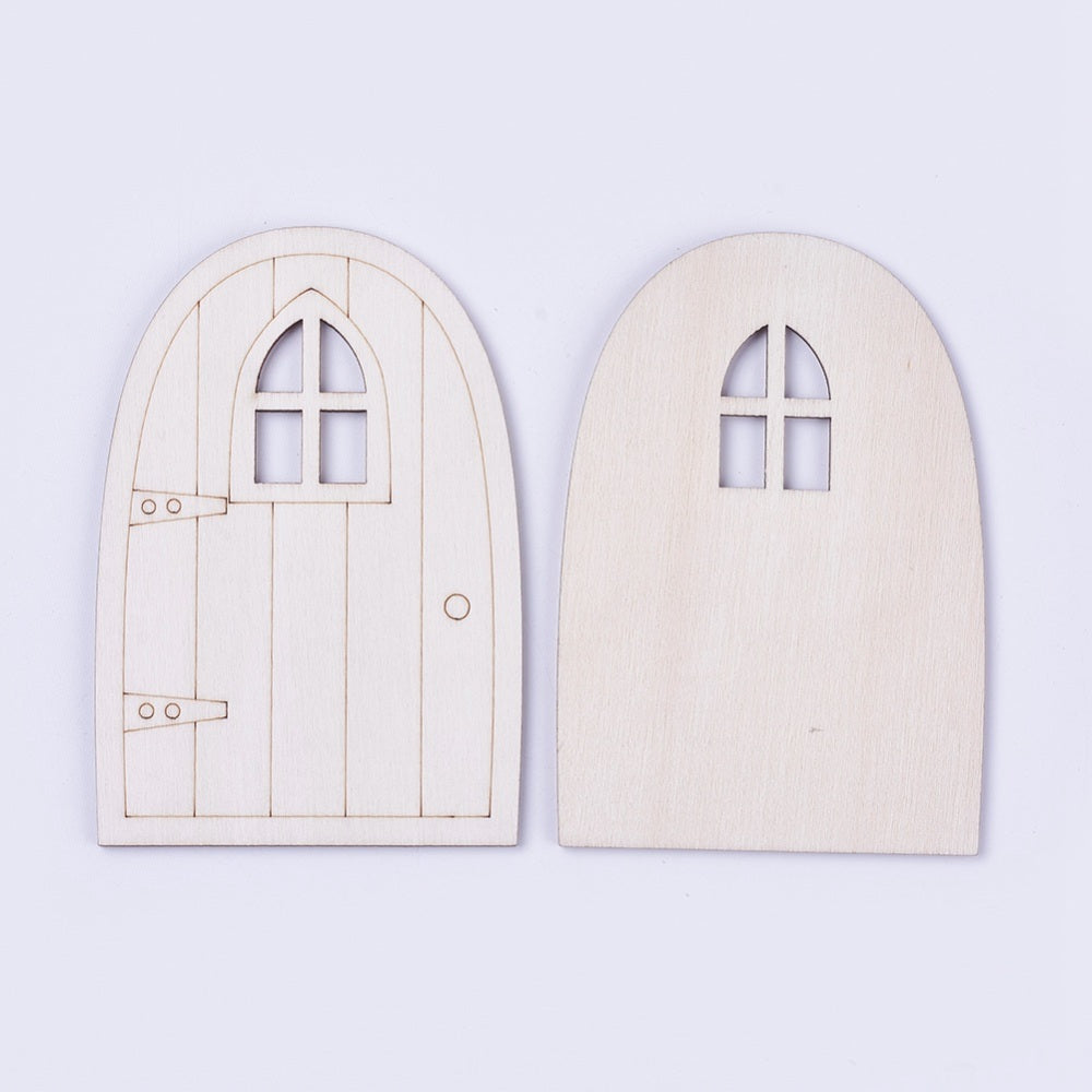 Wooden Fairy Door Decoration, Antique White, 9.9x6.75x0.2~0.3cm. Sold Individually