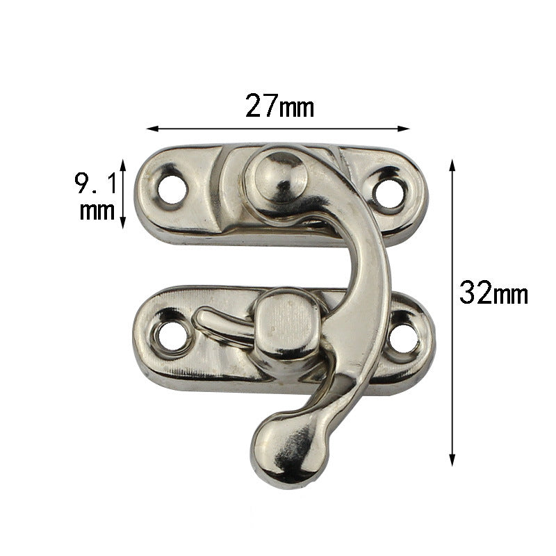 Wooden Metal Box Lock Catch Clasps, Jewelry Box Latch Hasp Lock Clasps, Silver, Overall Size: 3.2x2.7cm (*Packed 10)