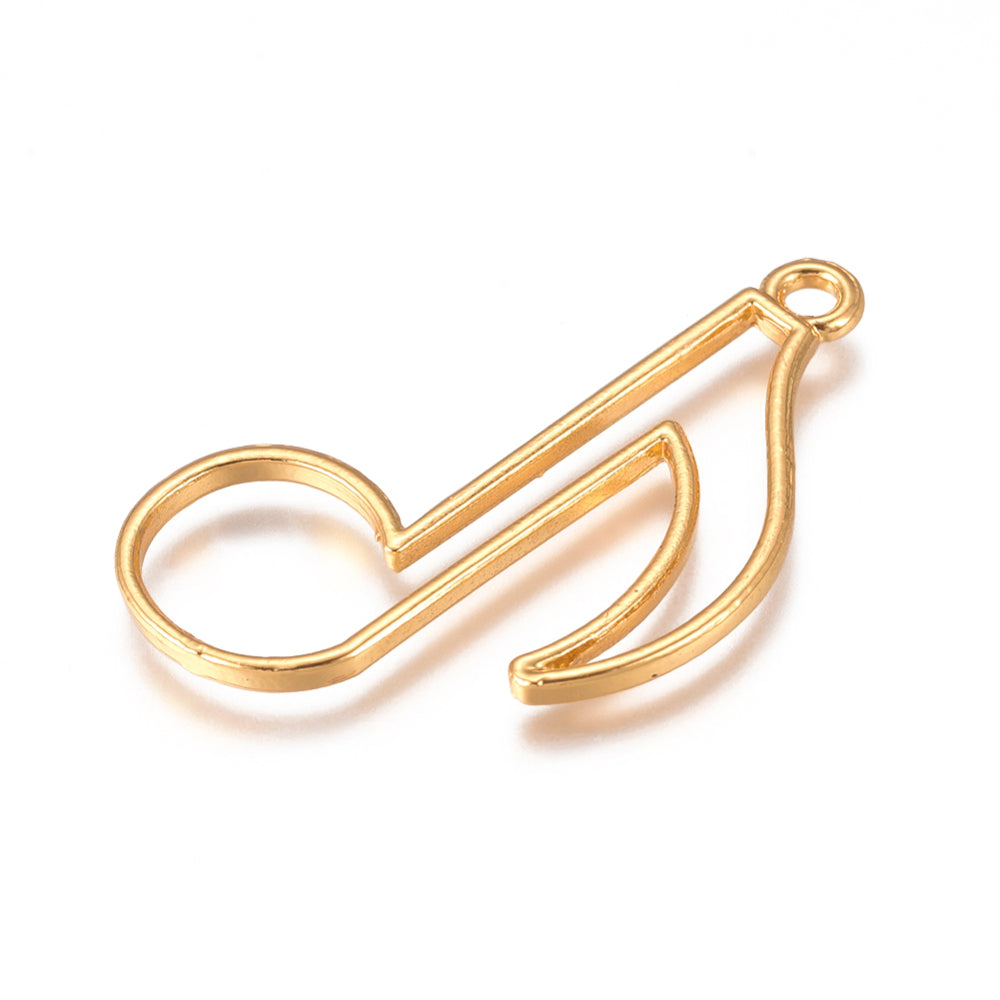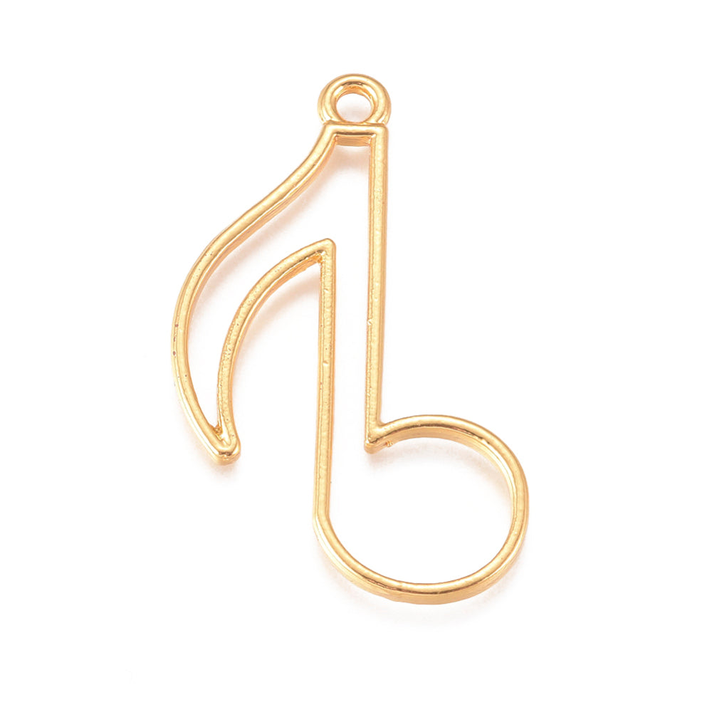 Zinc Alloy Open Back Bezel Pendants, Musical Note, Golden, 38x24x1.8mm, Hole: 2.3mm(Packed 2) )