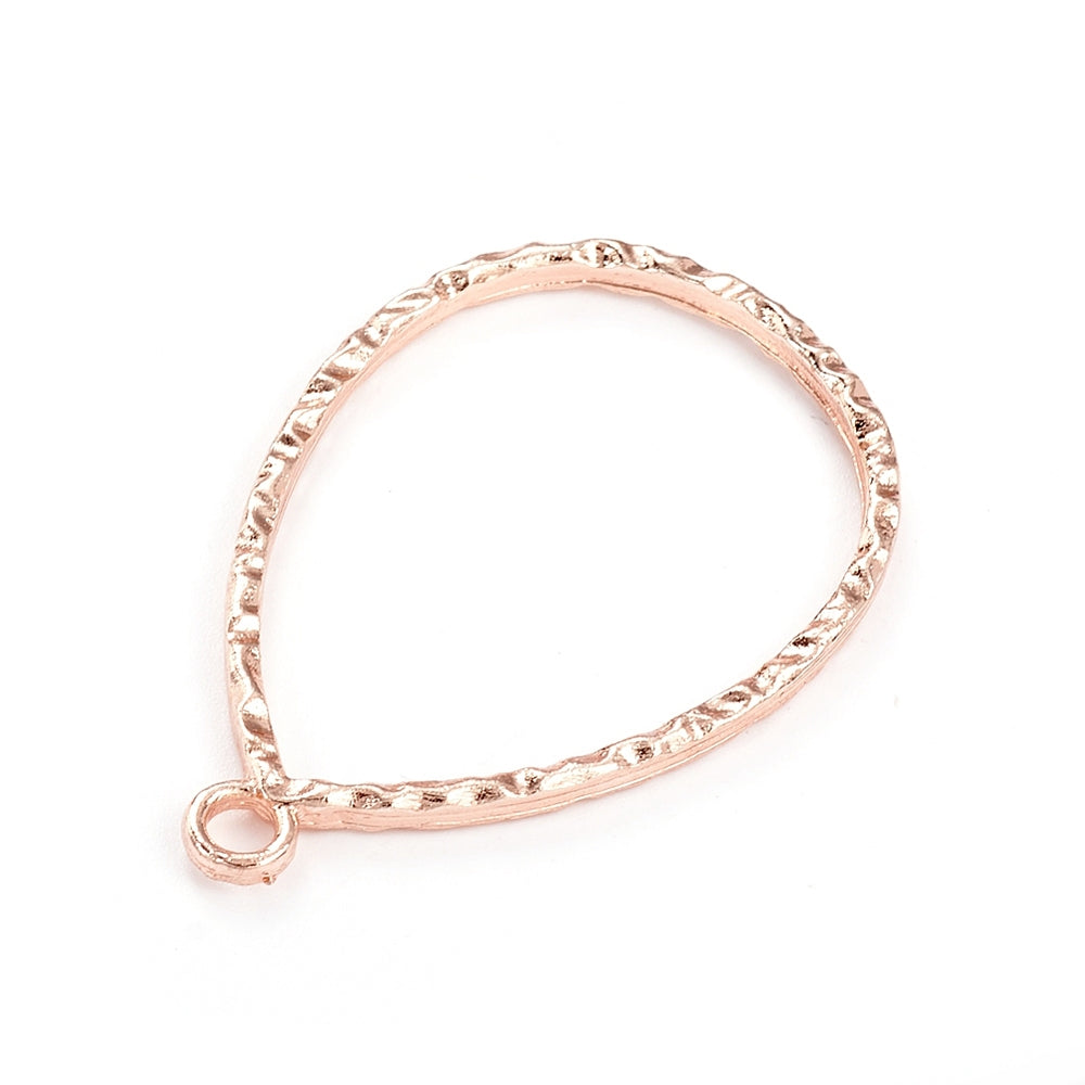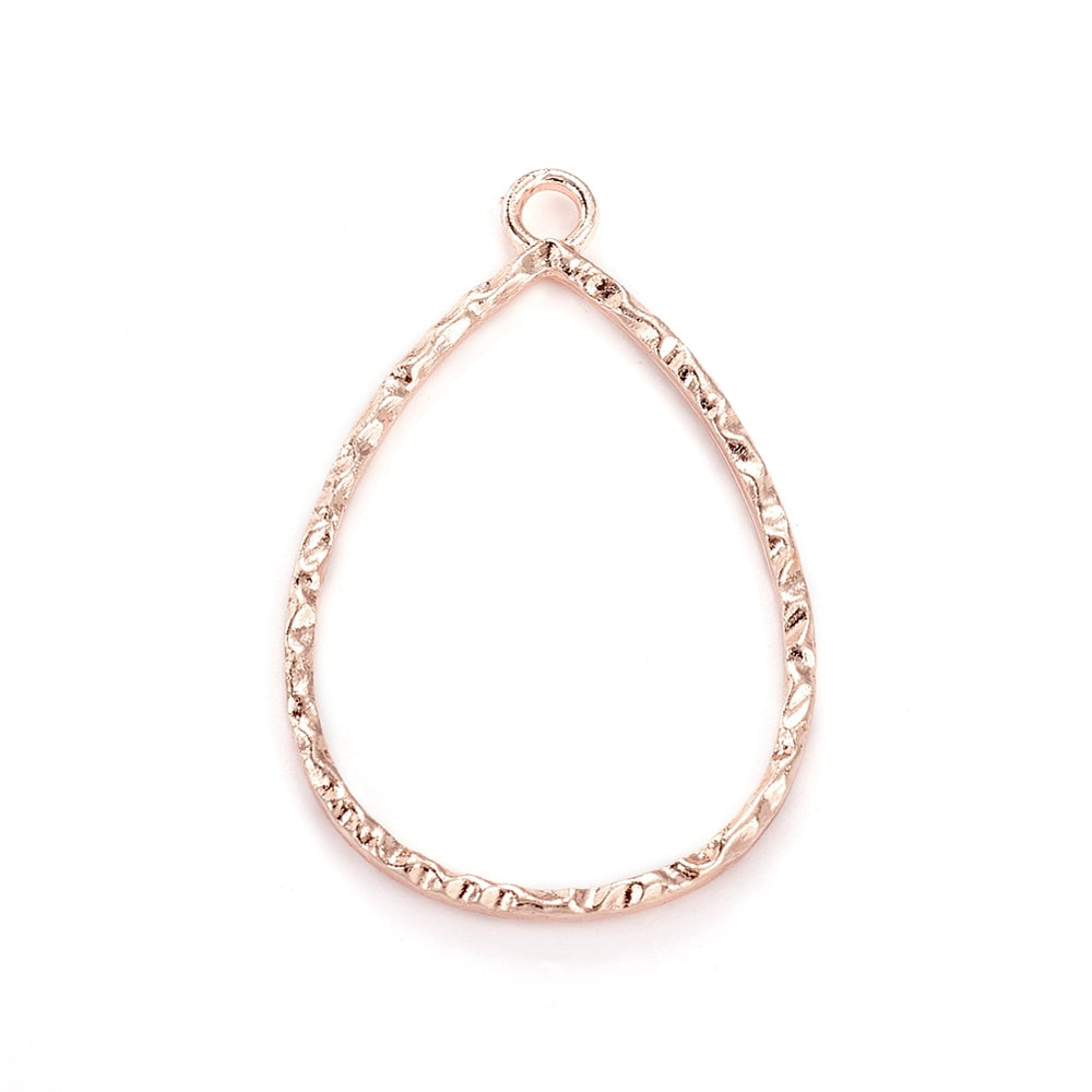 Zinc Alloy Open Back Bezel Pendants, Teardrop, Rose Gold, 37x24x2mm, Hole: 2.5mm (Packed 2)